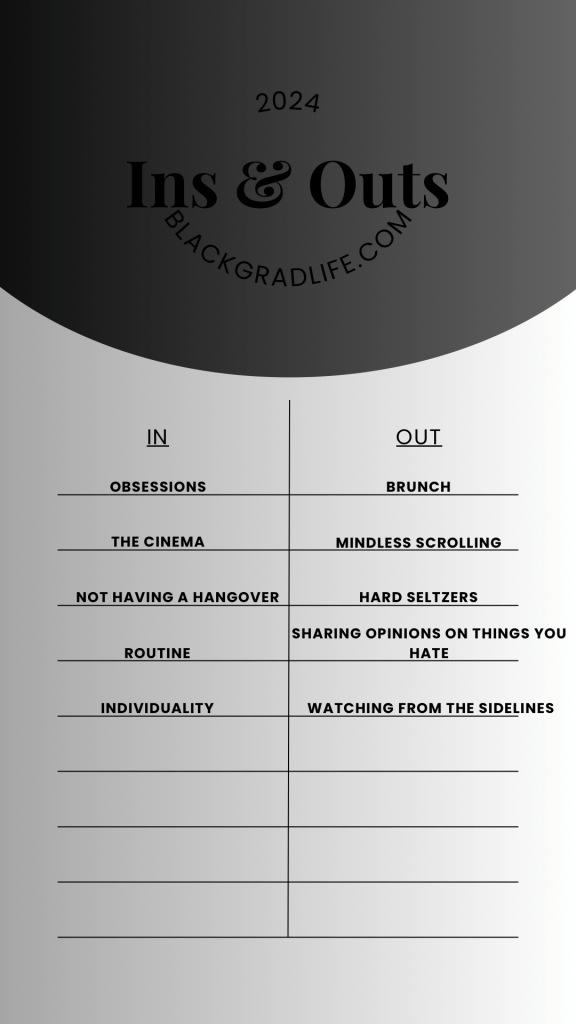 So there we have it folks my personal Ins and Outs for 2024. Who was scared? What did we think? Let me know in the comments below, I argue write back. I’m hoping this read was as fun as writing it was. Again, these are just things I am personally feeling and not feeling for the new year. I would love to hear you guys opinions as well as what are some of your own personal Ins and Outs for 2024? If we can’t find any commonalities in our lists I do hope that we at the least share in the mindset that we’re rocking with what is in and flocking on what is out!